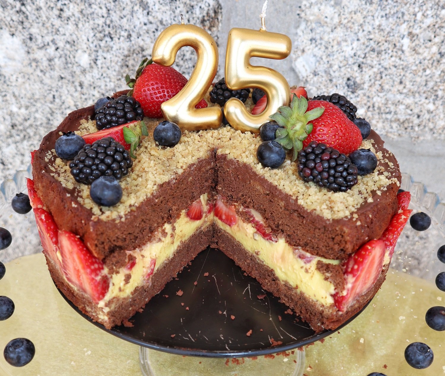 Bolo de Aniversário: Bolo Fofo de Chocolate com Creme Pasteleiro de Limão (Sem Glúten, Sem Lacticínios, Sem Refinados)