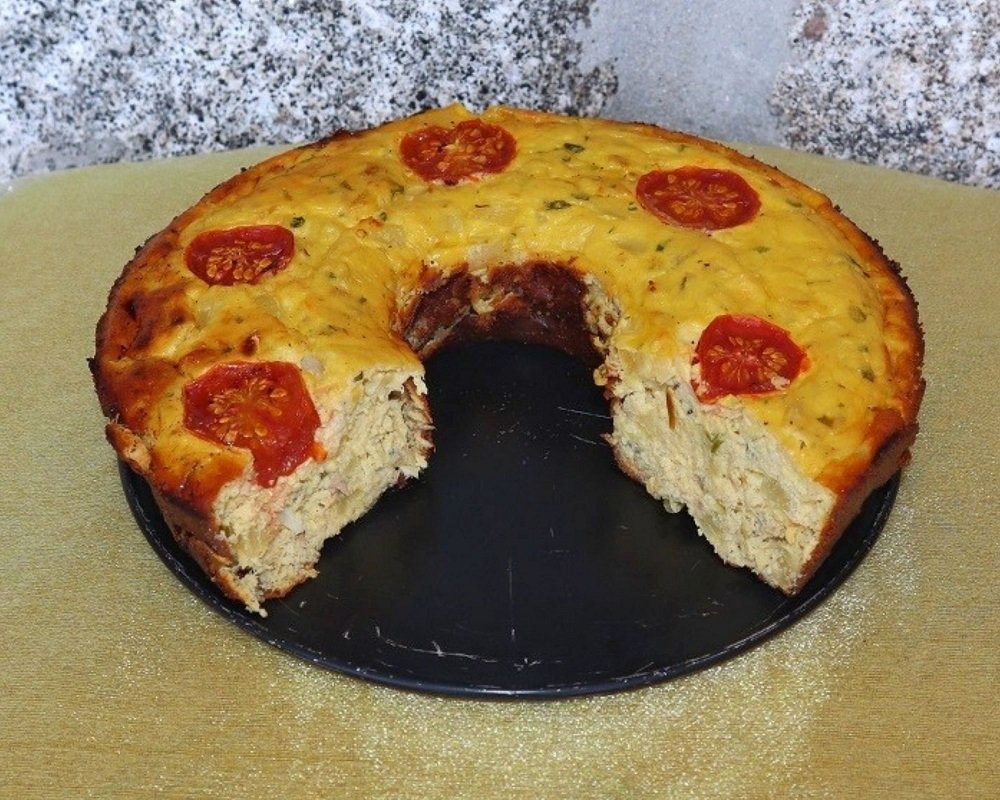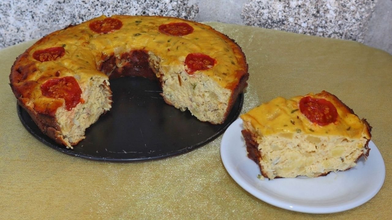 A torta não leva farinhas, é muito fácil de preparar e fica muito boa. O sabor faz lembrar as pataniscas de bacalhau. É uma sugestão saborosa e saudável para uma refeição!