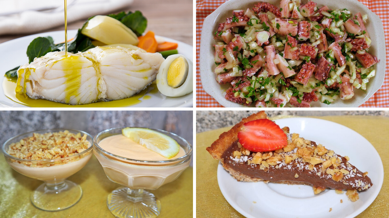- O clássico bacalhau cozido, acompanhado de couves, um pouco de batata-branca (ou batata-doce), ovo cozido, regados em azeite extra virgem;