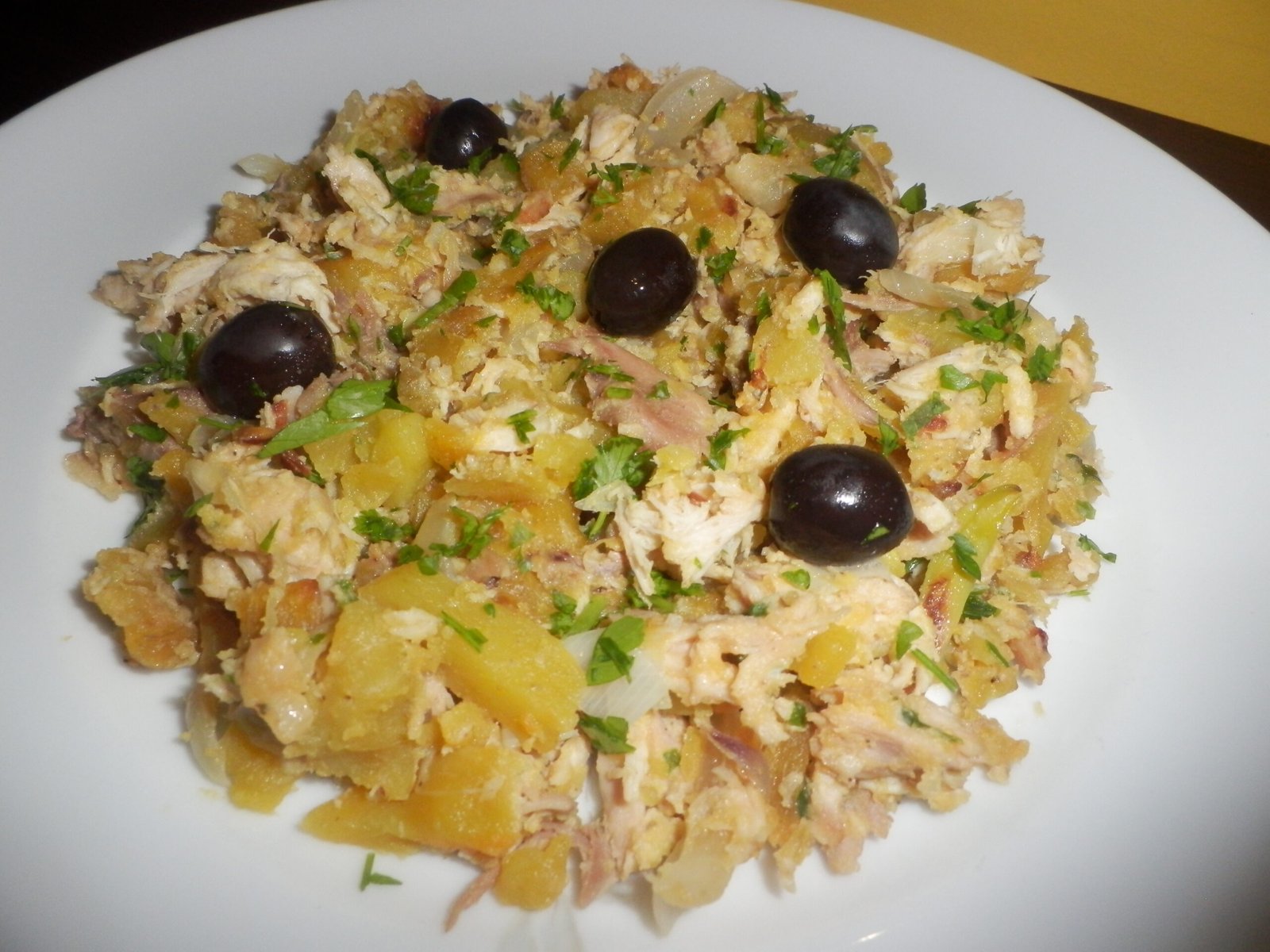 5º PASSO: Servir! Pode colocar mais salsa e decorar com azeitonas.
