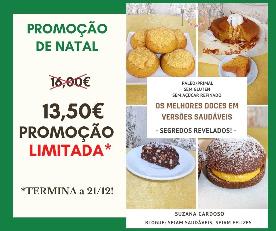 O novo livro digital de receitas que tanto me pediram é finalmente lançado… Neste Ebook conto os meus “segredos”, partilhando receitas das melhores sobremesas em versões adaptadas à Paleo/Primal, Sem Glúten e Sem Açúcar Refinado.