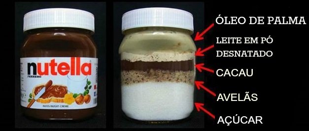 Contudo, como a Nutella é um veneno composto maioritariamente por açúcar (foto abaixo) e outros aditivos que causam inúmeros problemas de saúde, a solução passa por confecionarmos a nossa própria “Nutella”, livre de açúcar refinado, leite, glúten, entre outros ingredientes que desconhecemos.