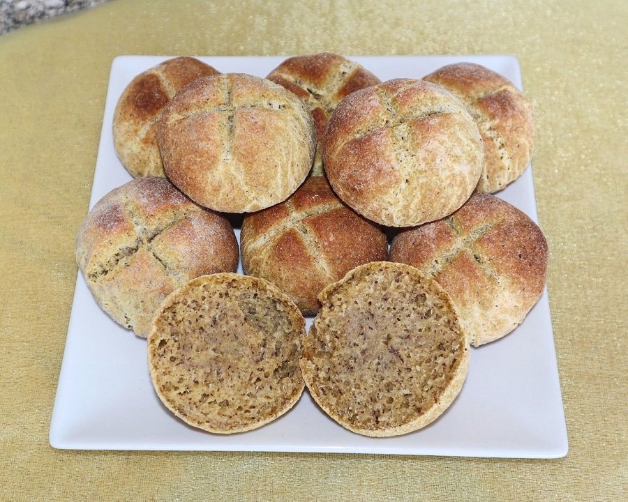 Nota: Os pães ficam saborosos e com uma textura ótima. Os pães que não consumir nesse dia, congele-os para manter a textura.