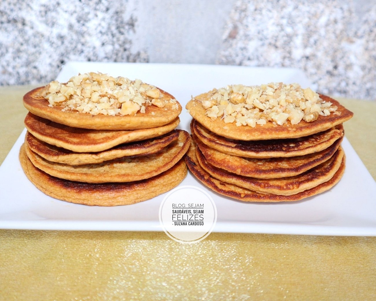 *Adaptado das receitas de panquecas aqui do meu Blog “Sejam Saudáveis, Sejam Felizes Quantidade: 10 de tamanho pequeno